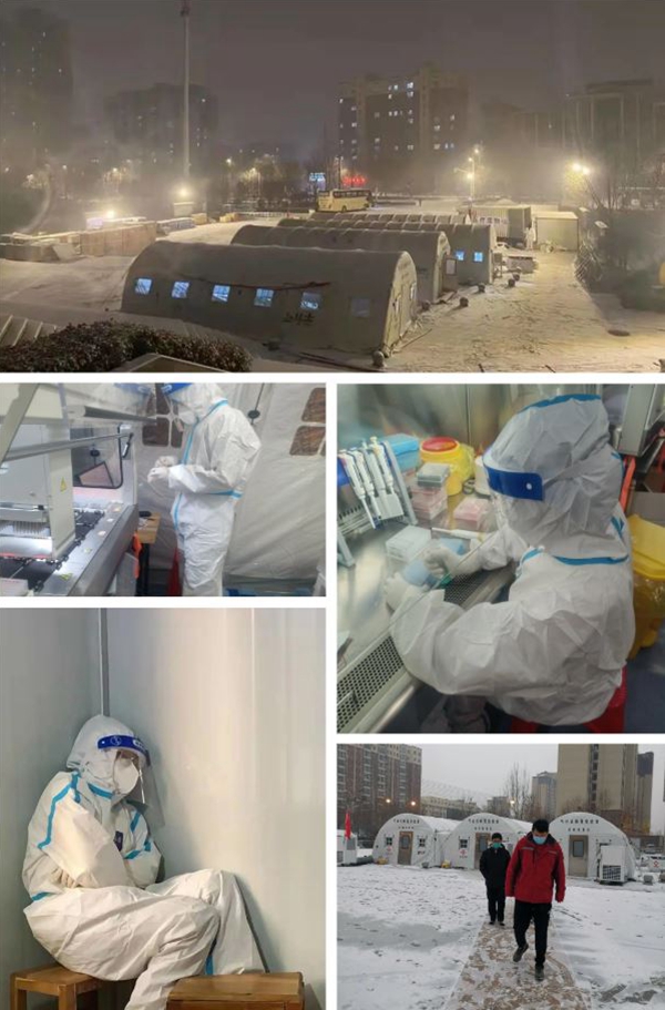 冰冻天气,艰苦奋战!过去的18天里,即使大雪纷飞,检验人员脱下厚棉袄,穿上又冷又滑的防护服,靠暖宝宝贴、自加热鞋垫保暖。零下的水浸泡着冰渣子,有些同事手都开始皴裂……在这样冰冷恶劣的天气里,他们依然日夜不停,分工协作,始终严格按照新冠检验标准流程,认真对待每一份标本,只为保质保量完成筛查工作。